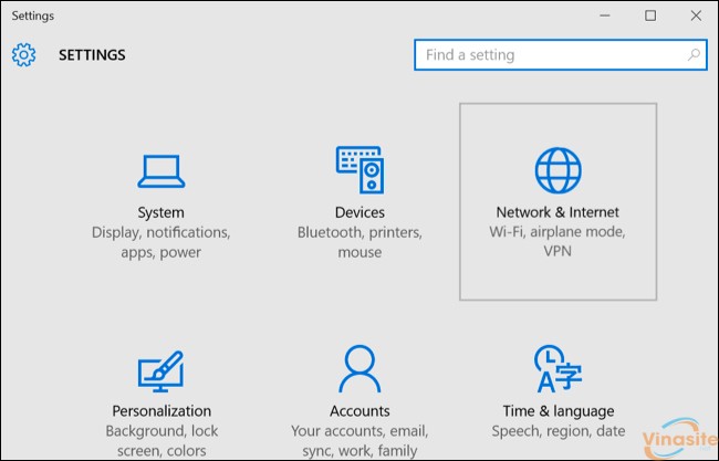 Để quên Wifi đã lưu trên Windows 10, đầu tiên mở ứng dụng Settings bằng cách mở Start Menu rồi chọn Settings.